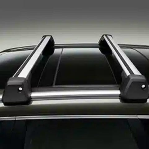 Volvo lastbågar lasthållare för takräcke. Två rails med tillhörande nyckel enligt medföljande bruksanvisning "Load carrier rails". Passar bilmodeller som är kompatibla med Volvos original lastbågar av denna typ. Avsedda för montering på bilens tak för transport av exempelvis takbox eller annan last som är anpassad för takräcken.