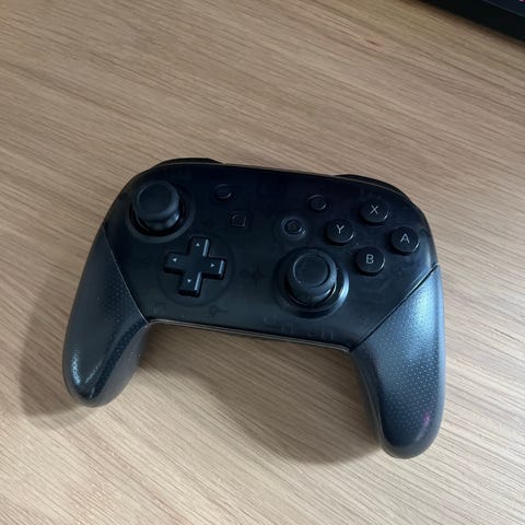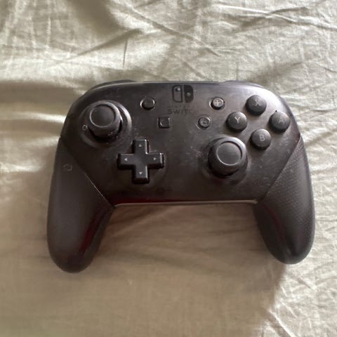 Nintendo Switch Pro Controller spelkontroll i svart färg. Trådbunden anslutning via USB-kabel. Utrustad med två analoga styrspakar, styrkors, axelknappar och funktionsknappar anpassade för Nintendo Switch-system. Passar för spel på Nintendo Switch-konsol där en handkontroll med traditionell layout önskas.