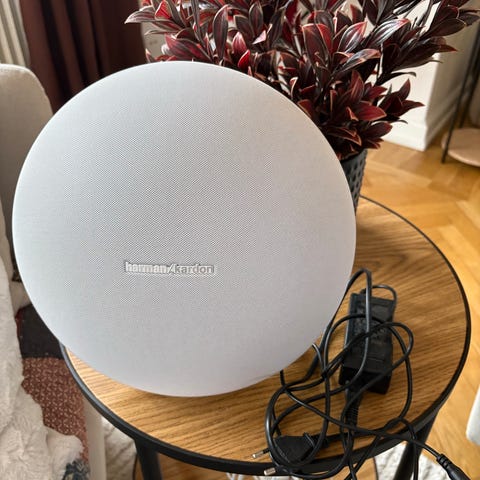 Harman Kardon Go + Play högtalare i vit färg. Ikonisk design.