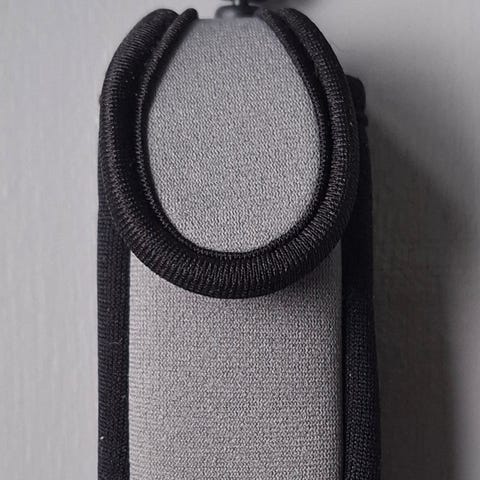Flexibelt fäste för mobiltelefon/läsplatta på exempelvis flygstolens ryggstöd. I praktiskt etui.