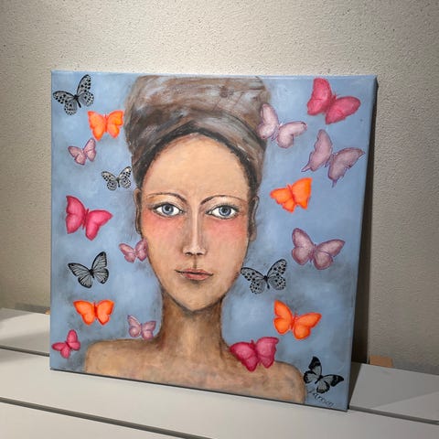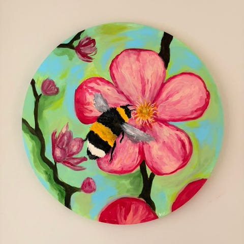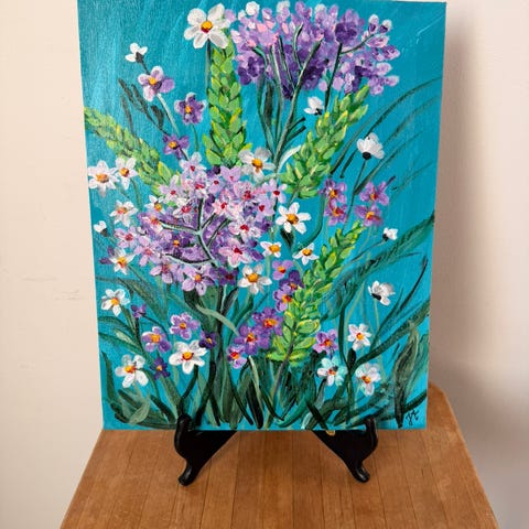 Akryl målning på pannå.Vacker pion.Storlek 24x30 cm.