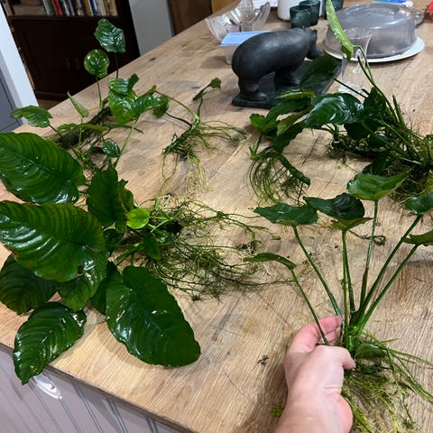 Löven används flitigt av akvarister till både fiskar och räkor. Plantan du köper är ca 20cm hög, planterad i kruka med näringsrik och väldränerande jord. Ca 1 år gammalt från frö (Philippinerna)