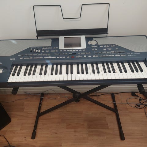Korg PA600 QT keyboard i svart utförande. Modellen har inbyggda högtalare, display och ett flertal reglage och knappar för ljudval, effekter och kompstilar. Tangentbordet är av standardstorlek och lämpar sig för hemanvändning, övning och enklare livebruk. Passar för spel inom flera musikstilar tack vare de många förinställda ljuden och funktionerna.