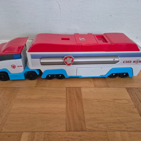 Paw Patrol leksakslastbil i grön plast med orange detaljer.Sop blien är flak och har utrymme för mindre leksaker. Fordonet har sex hjul och är avsedd som leksak för barn som gillar Paw Patrol och fordon. Passar för lek inomhus på golv eller andra plana ytor.