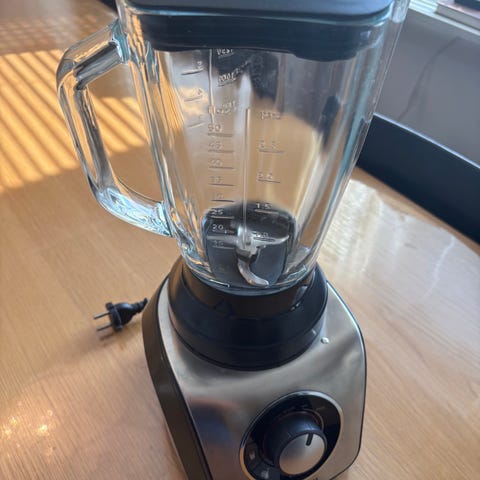 Blendern är i bra skick med normalt slitage (se bilder). Alla delar ingår: kanna, lock och bas.