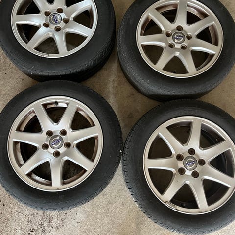 15” Aluminium fälgar till bla Volvo C30 mfl, fälgar i fint skick med dåliga däck.