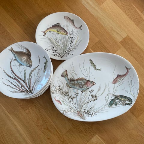 Serveringsfat med fiskmotiv i porslin. SÄLJES STYCKVIS!