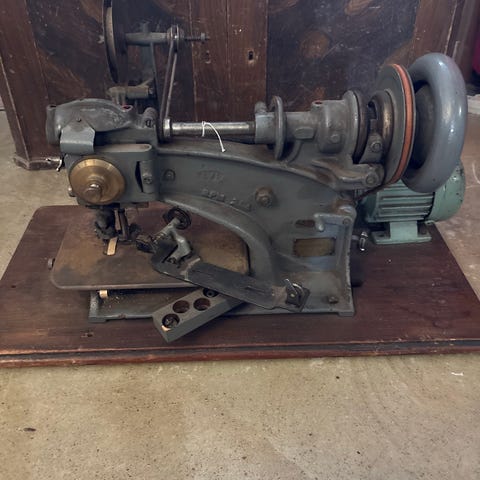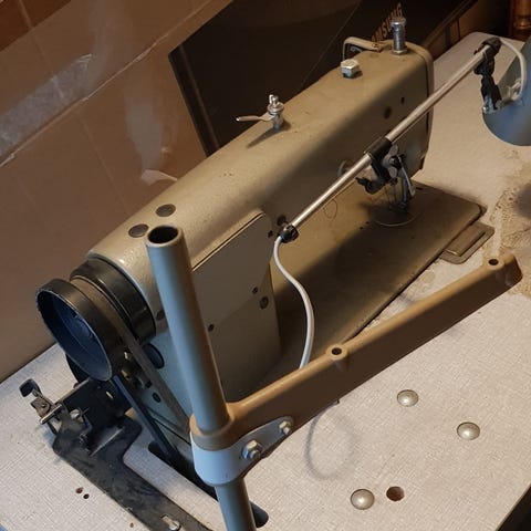 2 st symaskiner för skinnarbete. Den äldre fungerar som den är. SINGER behöver monteras. Motor ingår. Ovanlig modell. Endast avhämtning.