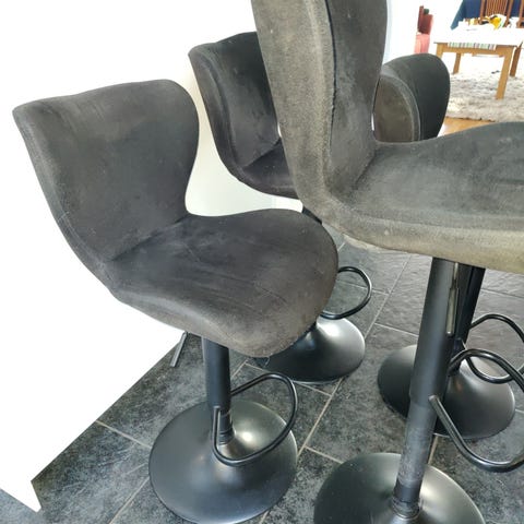 Två stycken barstolar med metallben och rött tyg i jättefint skick. Säljer pga att jag inte har någonstans att ha dem. 150 kr styck eller 250 tillsammans.