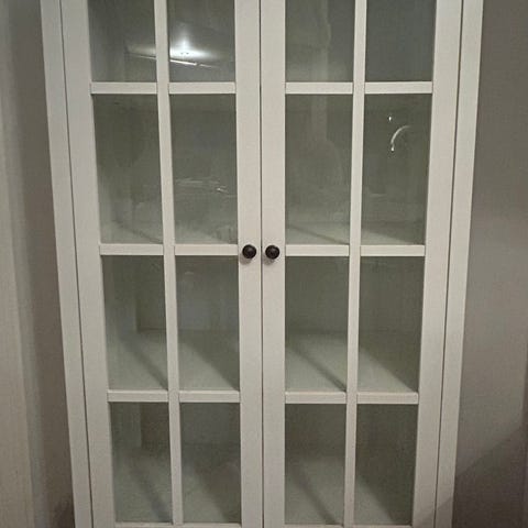 Gediget vitrinskåp i vit färg.