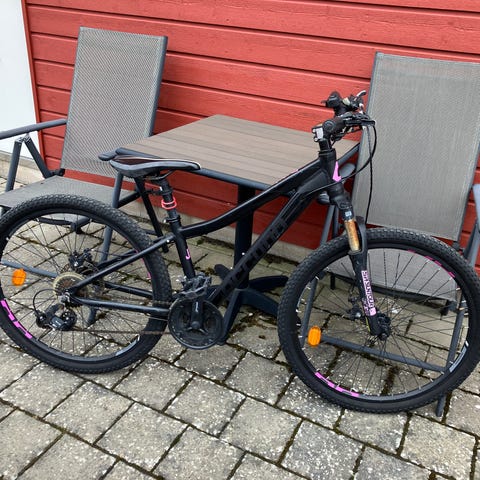 Occano X26 mountainbike med 26" hjul i färgen rosa/svart. Cykeln har grovmönstrade däck anpassade för blandad terräng och en ram utformad för barn/ungdomar. Utrustad med framgaffel med fjädring, plattformspedaler och handbromsar. Max tillåten totalvikt enligt märkning är 120 kg. Lämplig som barn- eller ungdomscykel för vardagscykling och enklare terrängkörning. 8 växlad