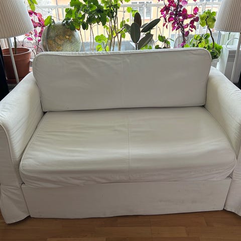 Soffan är 7 år gammal och är inköpt på Stalands. Den är solblekt, har några fläckar som säkert går att ta bort. Skön att sova i och har mer kvar att ge.