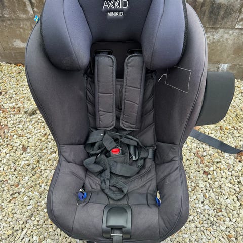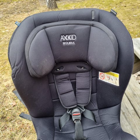 Axkid Wolmax bilbarnstol för barn upp till 25 kg. Bakåtvänd bilbarnstol i svart tyg med justerbar internsele och sidostöd. Stolen monteras med bilens trepunktsbälte och stödben. Klädseln är avtagbar för rengöring. Lämplig för montering i bilens baksäte enligt tillverkarens anvisningar.
