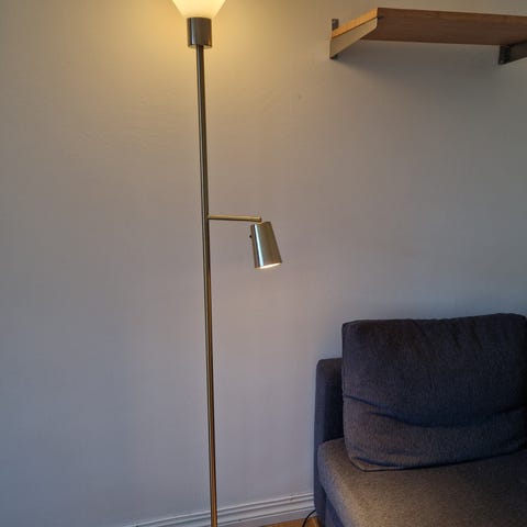 Säljer denna helt underbara golvlampa med både lampa upttill och en läslampa. Den kommer ifrån Ikea med produktnamnet Flugbo mått 180 cm hög. Säljes endast pga av platsbrist. Vid flytt till mindra. Golvlampan är i mycket gott skick. Som helt Ny i skicket. Kom och titta på den. Bor i tullinge riksten botkyrka. Mvh Marita