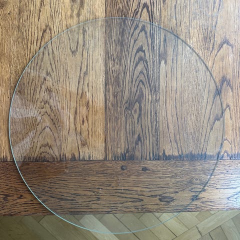 Rund stor glasskiva 105 cm i diameter, 1 cm tjock, rundade avfasade kanter
