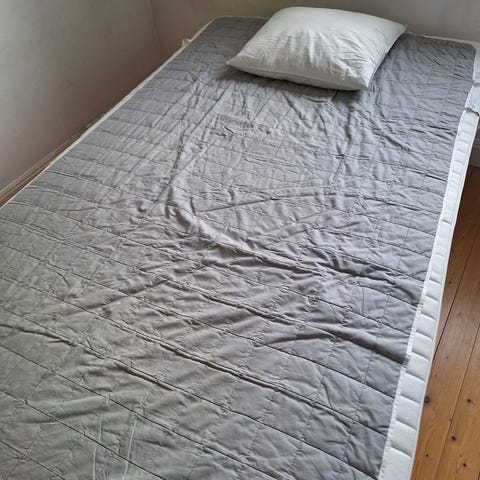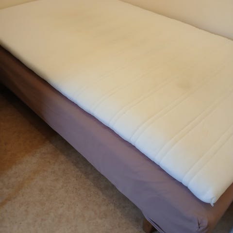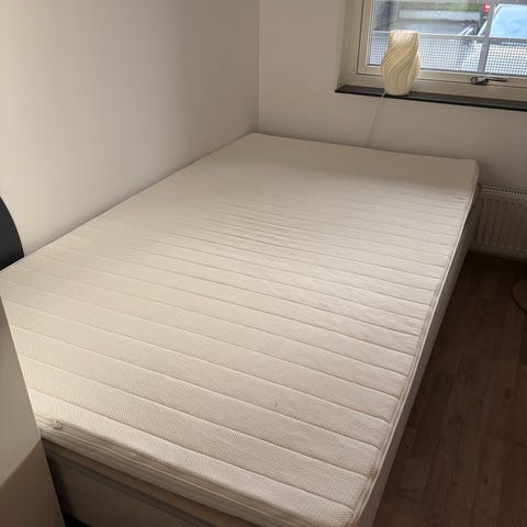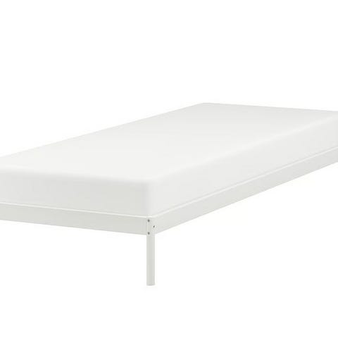 IKEA Sultan Stamnes säng i vitt tyg med träben. 120cm bred, 200cm lång(standard)