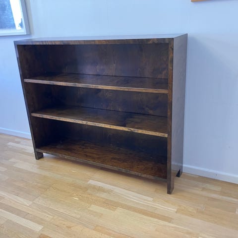 Har en liten limmad flisa i faneret på ena hyllplanet, påverkar inte stabiliteten.
