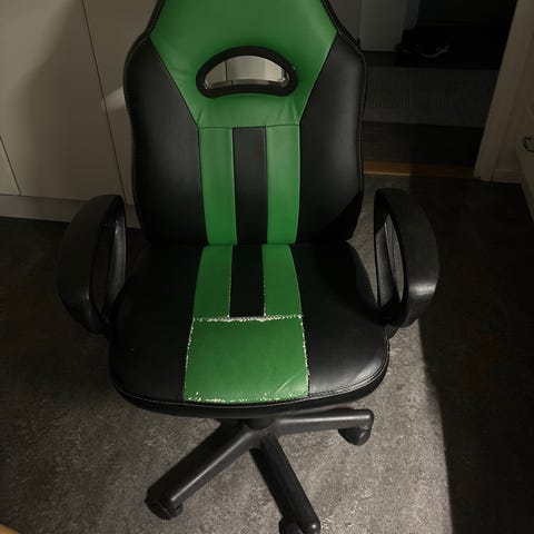 En gaming stol i grön och svart färg
