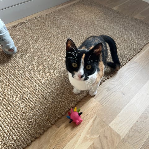 På grund av ändrade familjeförhållanden så söker vår Siri ett nytt hem. Siri är en liten bondkatt på 10 år, hon är en väldigt pigg och alert dam som gillar att busa. Hon är ingen knäkatt men lägger sig gärna nära bredvid en för att mysa och bli klappad. Hon älskar att gå ut i koppel och hade mycket väl kunnat funka som en utekatt. Siri har tidigare bott med en annan katthona som funkat bra. Hon är kastrerad. Bor idag tillsammans med barn vilket hon har anpassat sig till.