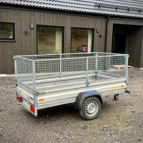 Hemtillverkade träsidor enl bild medföljer, perfekt när det ska lastas ved eller åka till soptippen.