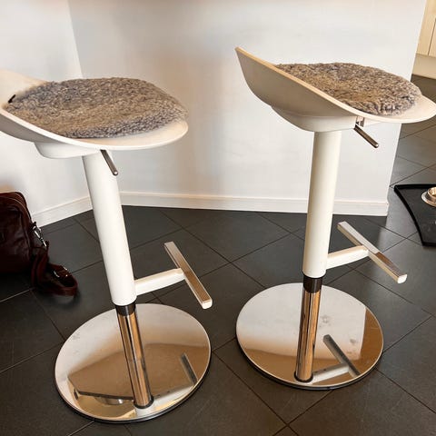 Barstolar från Ikea Janinge . 4 st för 2400 alt 640kr / st. Max höjd 85, lägsta 72, foten 42.
