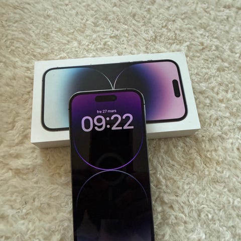 Apple iPhone 14 Pro smartphone med 128 GB lagringsutrymme. Modellen har skärm med platt design och rundade hörn samt tre bakre kameror. Färgtonen är guld. Enheten passar för vardaglig användning som samtal, meddelanden, surf, appar och fotografering. Levereras med originalkartong enligt bild om inget annat anges i annonsen.