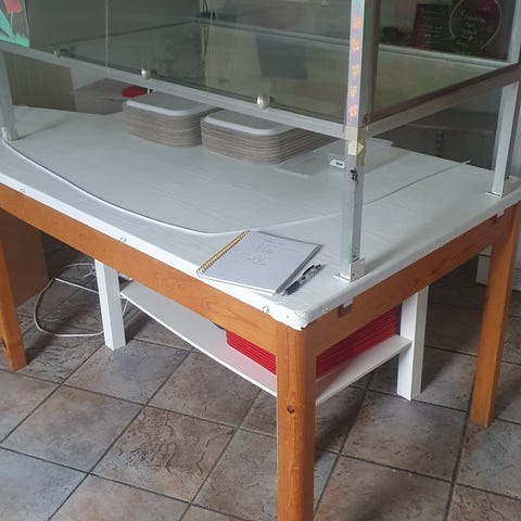 Skrivbord & hylla bortskänkes