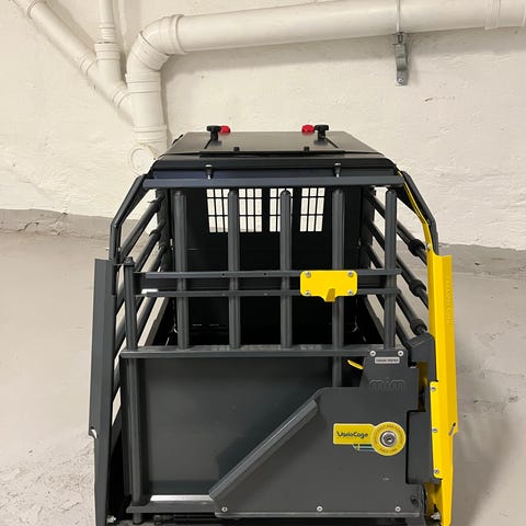 Hundbur från mimsafe. Enligt tillverkaren lämplig för hundraser upp till 52 cm i mankhöjd.