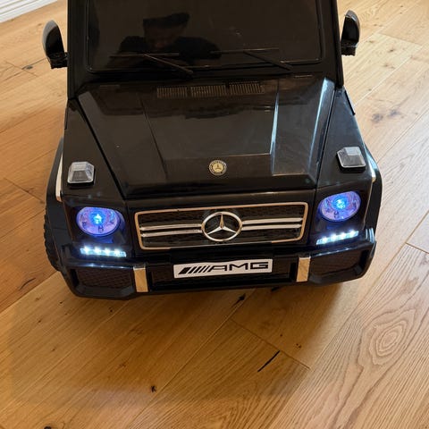 Mercedes benz AMG elbil inkl laddare och fjärrkontroll för föräldern. Funkar felfritt men har lite märken o repor efter lek.