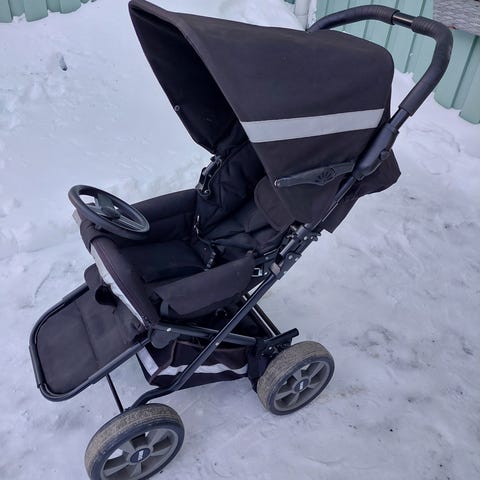 Sitt del med fullt liggläge, stor sufflett, samt sele.