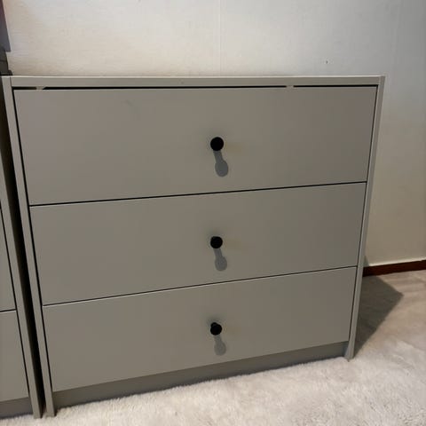 Två byråer 90x90 med djup 35 med möjlighet att hänga upp på väggen, väggskenor medföljer.