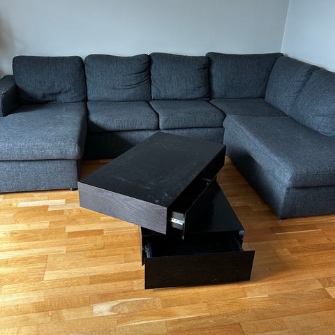 Väger inte så mycket, men otymplig pga storlek. Bärhjälp till bil finns. Hiss finns i huset.