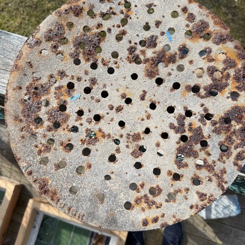 Runt brunnslock i gjutjärn.
