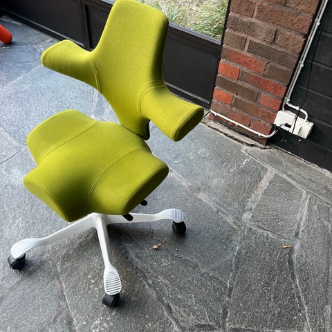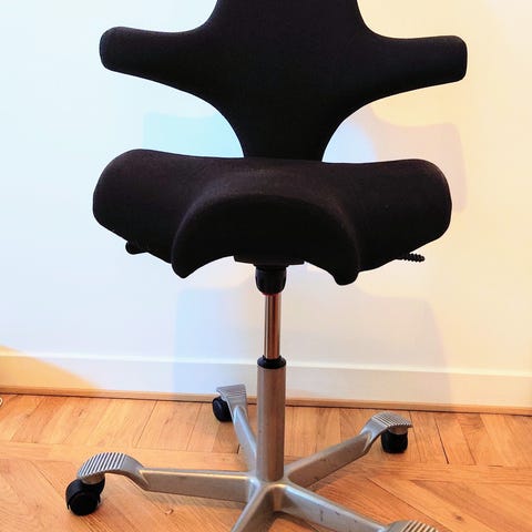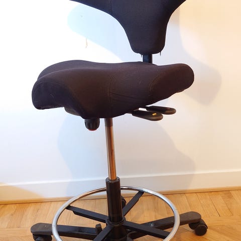 Skön stol för varierande ergonomisk sittställning eller halvstående.