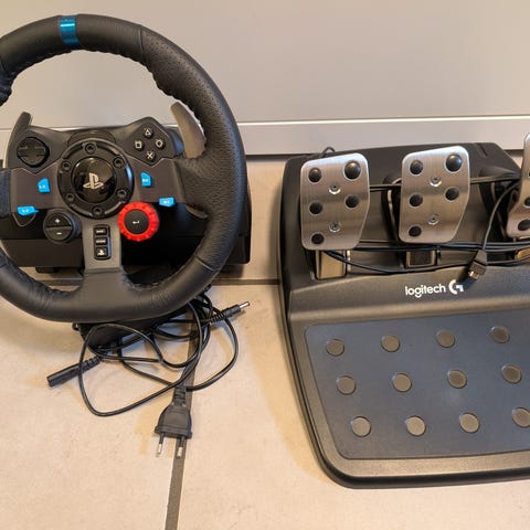 Säljer min sparsamt använda Logitech G29 ratt, pedaler och manuella växelspak.