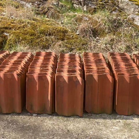 Gamla, vissa mycket gamla, handslagna enkupiga tegelpannor med härlig patina. Ett hantverk från förr och många är supervackra om man vill skapa något annorlunda t ex lampett av dem.