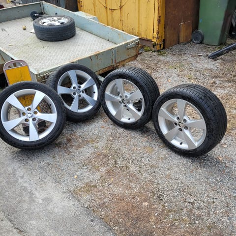 Jag hade dem på en Skoda Fabia. Två av dem är i väldigt bra skick och dem andra två duger säkert till en sommar till. ÄKTA Skoda fälgar som syns på bilden följer med.
