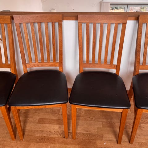 Säljer våra 4 st Ikea Norrnäs stolar i ek och grått typ eftersom de inte passar i vårt nya hem. Tillverkade 2017 -09. Fint skick överlag, men finns vissa små märken (se exempel på närbilder). Finns i Linghem. Prutning undanbedes vänligen. Säljes endast tillsammans, pris gäller för alla 4. Nypris 795 kr/st.