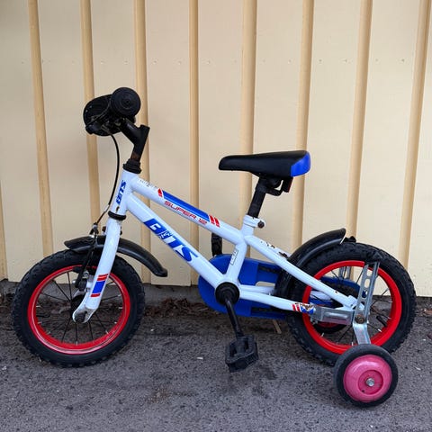 Barncykel White 12 tum med stödhjul