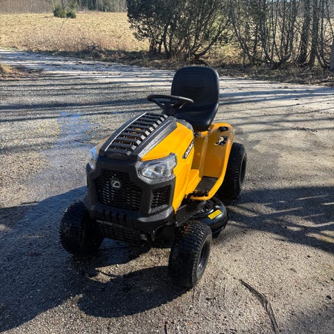Cub Cadet gräsuppsamlare dragmodell i gul färg. Utrustad med uppsamlarsäck i nätmaterial och dragstång för koppling bakom trädgårdstraktor eller åkgräsklippare. Två hjul bak för stabil förflyttning och frontlucka i metall. Avsedd för uppsamling av gräs, löv och annat trädgårdsmaterial på plana ytor som gräsmattor och gårdsplaner.