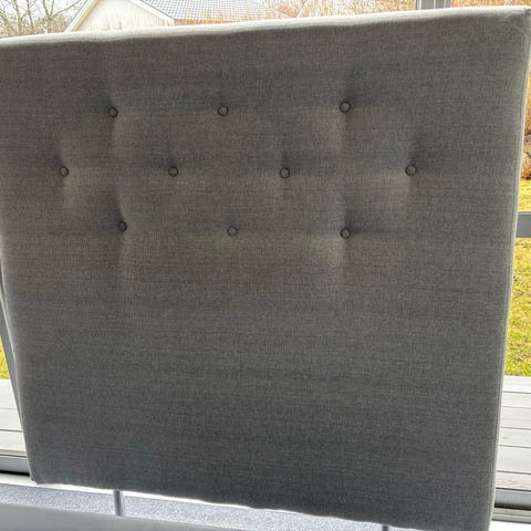 Jysk sänggavel i grå textilklädsel. Gaveln har en vadderad, rutquiltad front som ger ett mjukt stöd bakom sängen. Passar som huvudgavel till säng och placeras mot vägg. Färg grå 180cm bred 123cm hög