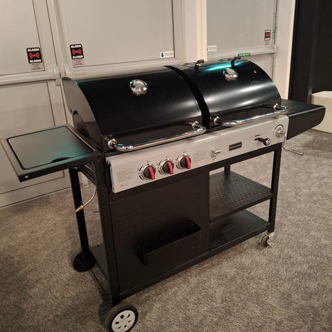 Bärbar gasolgrill i svart utförande. Kompakt modell med lock och handtag för enkel hantering. Grillen har räfflad grillyta och vred för reglering av gasol. Passar för utomhusbruk, exempelvis balkong, uteplats eller camping där en mindre gasolgrill behövs.Gasolflaska ingår....