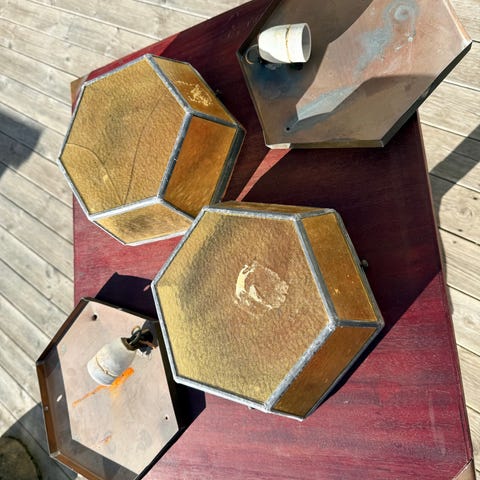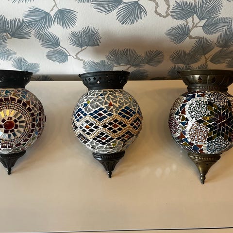 Säljer tre stycken dekorativa utomhuslampor i klassisk gårdsstil.