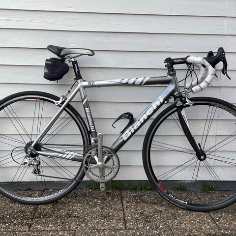 Ursprungligen en hybrid som är ombyggd till racer med växelgrupp o reglage som är Shimano 105. Ramen är i aluminium, cykeln har skivbromsar, och efter ombyggnad med aerostyre har den nu följande utväxling: