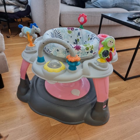 ihop av en träkula. Bygeln är mycket lätt att fälla in och ut och är därför lätt att ta med på besök. Bygeln har hål i olika höjder. Det ger flexibilitet och möjlighet att använda leksaker i olika storlekar.