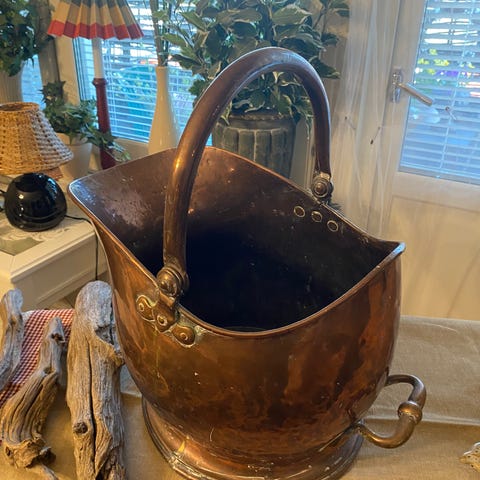 Stort fint kopparkärl för tex förvaring av ved. Diameter 49 cm och 28 cm hög.