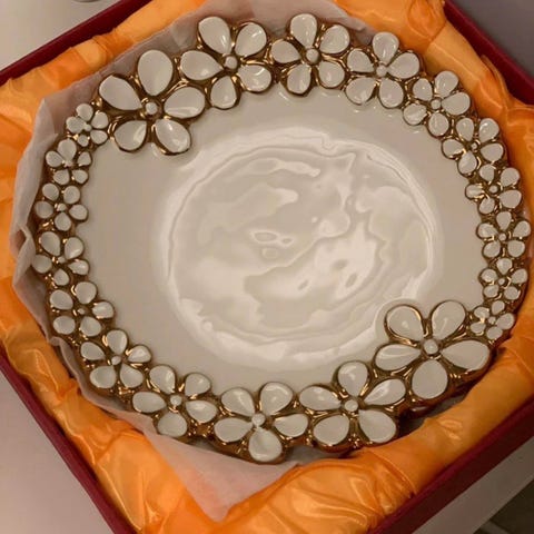 Frigolit till tårtdummy. Antal sexkantiga frigolitbitar: 1 bit som mäter 35 cm lång och 12 cm hög, 1 som mäter 30 cm lång och 15 cm hög, 1 som mäter 20 cm lång och 12 cm hög, 1 som mäter 15 cm lång och 4 cm hög, och en annan bit som mäter 15 cm lång och 12 cm hög med ihåliga toppar och botten och fyrkantiga detaljer på alla sidor. Totalt antal bitar: 5 frigolitbitar + 1 tårtbräda med 40 cm diameter.