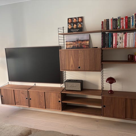 På denna länk finns mer info om hyllan (obs: i exemplet på sajten är färgen off-white medan denna är vit) https://tonnfurniture.com/products/stinas-hylla-517-cm