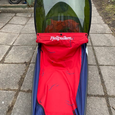 Pulka med kapell och dragstång. Pulkan har ett hårt skal med kapell som skydd mot väder. Invändigt finns sitt- eller liggyta. Medföljer draganordning i metall som kan fästas framtill på pulkan för att dra den vid promenad eller skidåkning. Sele. Lämplig för transport av barn eller packning på snöunderlag.