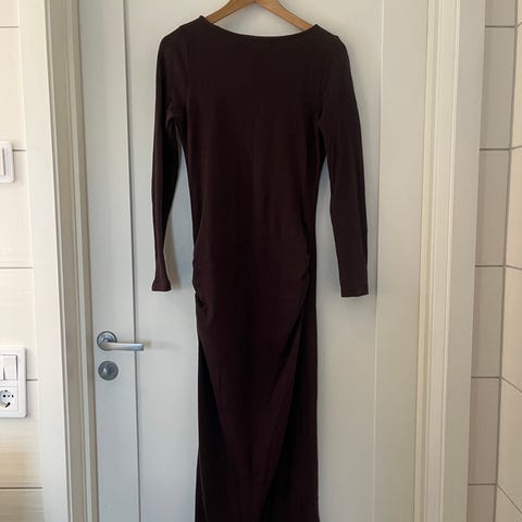 ASOS sommarklänning för dam i storlek S. Klänningen är grön med blommigt mönster och är tillverkad i bomull. Modellen är lång med volangkant nedtill och har långa ärmar med resår vid handlederna. Livet är smockat för en åtsittande passform upptill och klänningen har en fyrkantig ringning med volangdetaljer. Passar som vardags- eller sommarklänning.